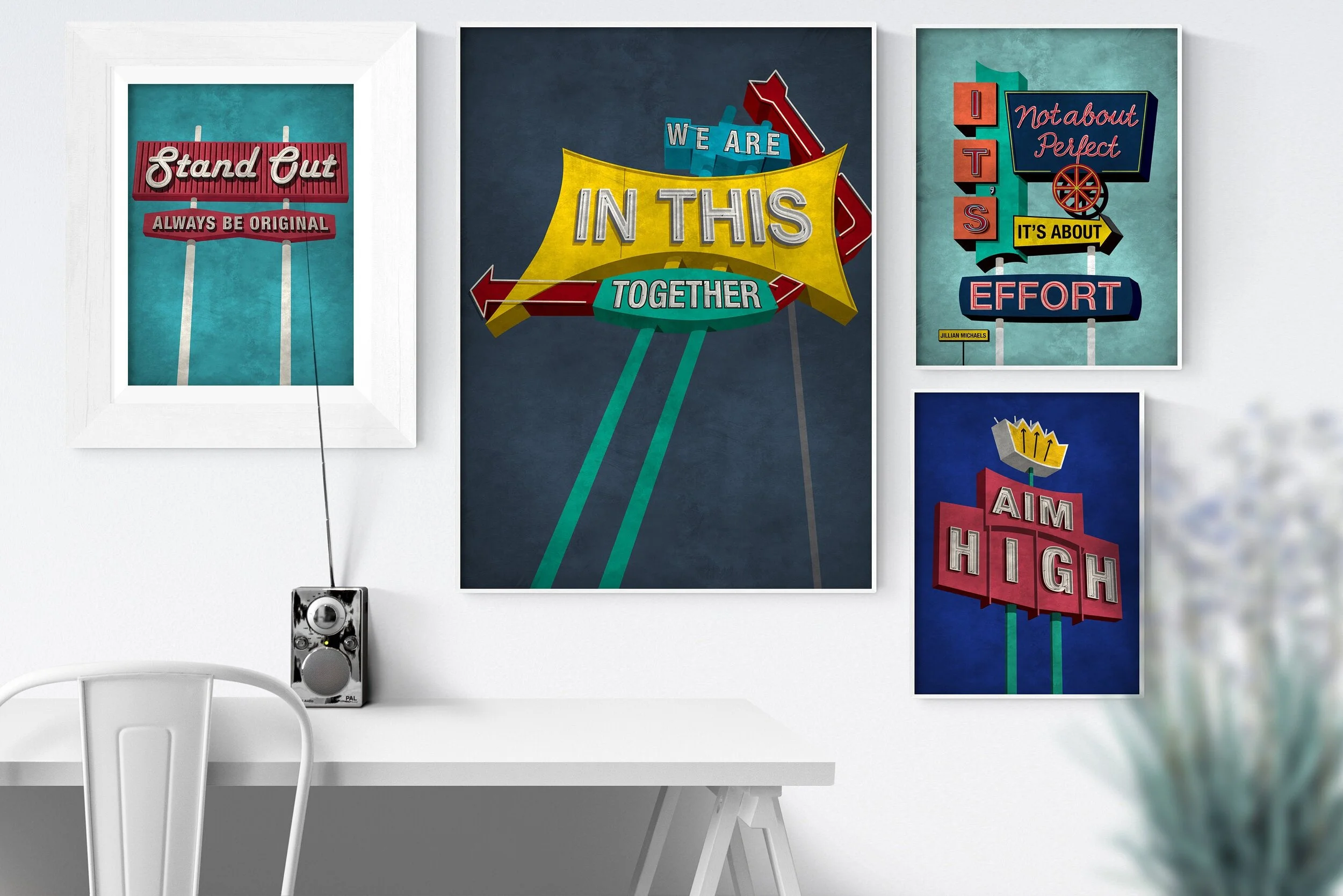 These vintage signs are inspired by actual signs around the world (mostly USA), and have been changed into positive success affirmations and quotes.