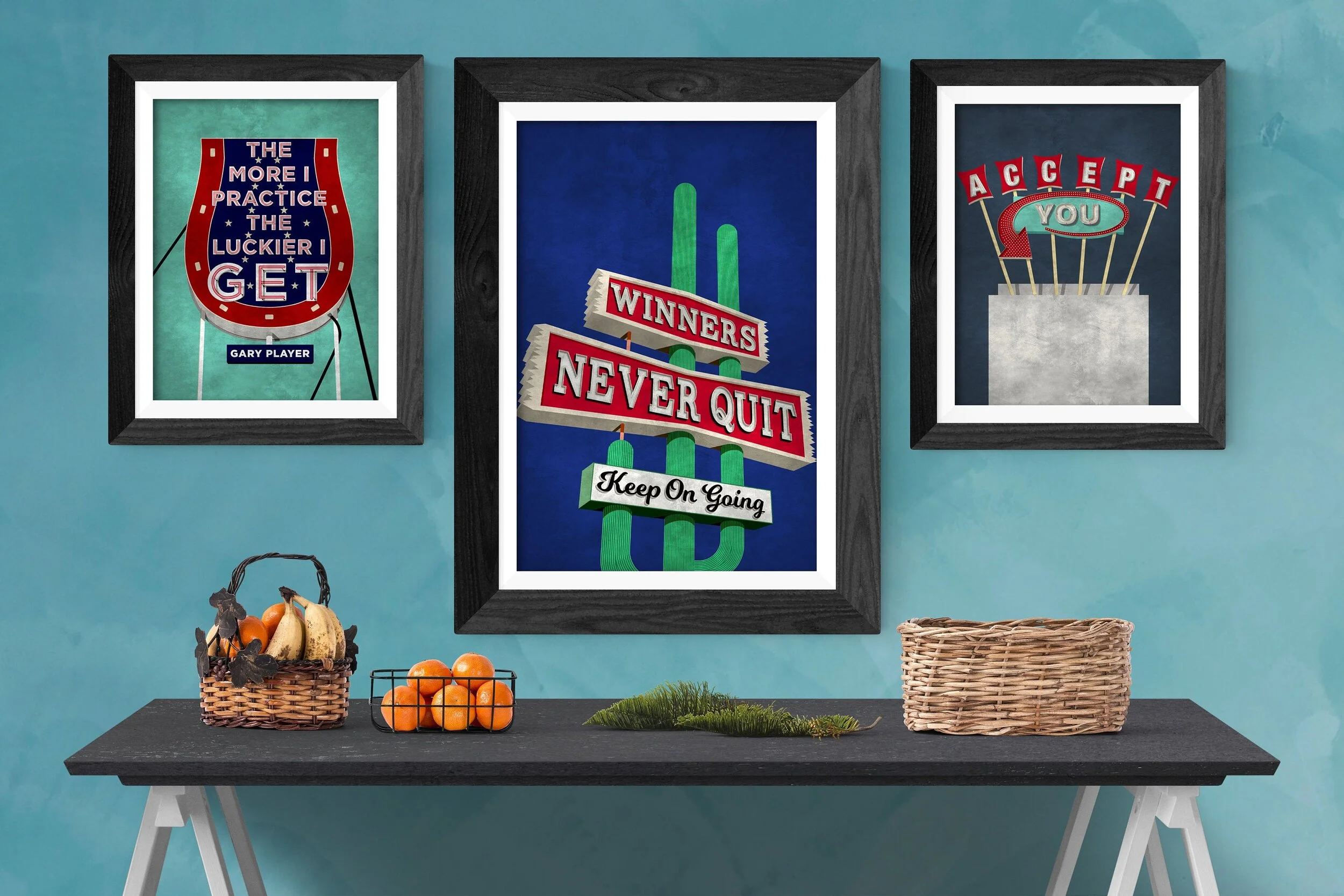 These vintage signs are inspired by actual signs around the world (mostly USA), and have been changed into positive success affirmations and quotes.